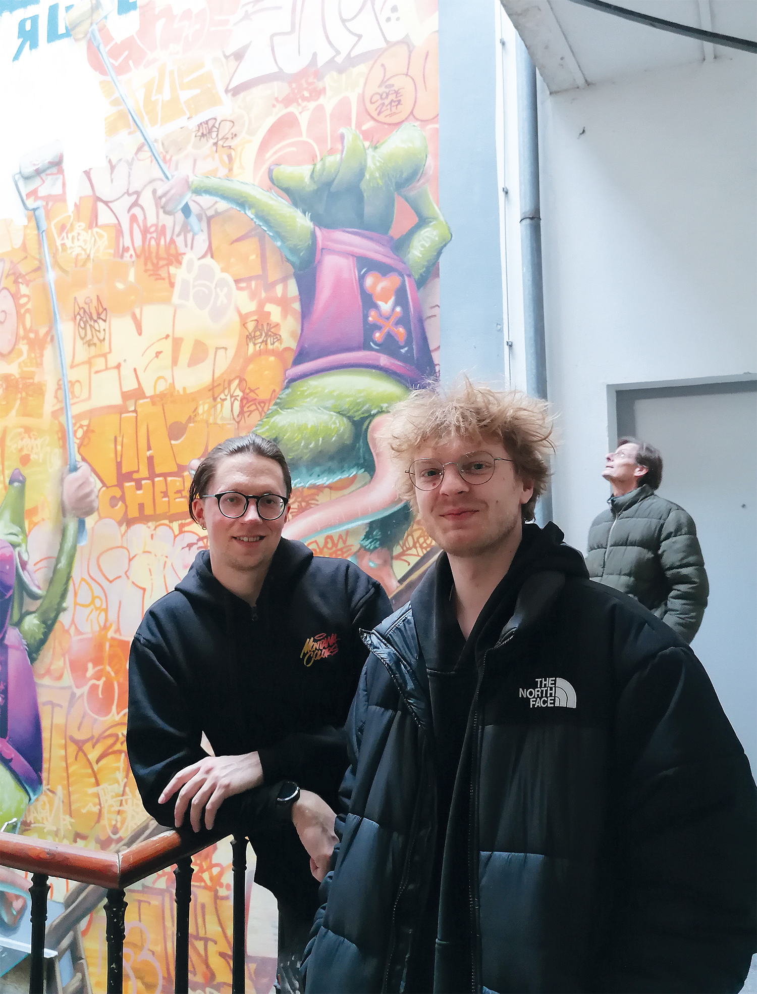 Philo Jöbstl (Mitte), am 5. November 1998 als Sohn einer Richterin und eines Architekten geboren, begann schon in der Volksschule mit dem Sprayen, maturierte an der Ortweinschule (Grafik und Kommunikationsdesign) und lebt in Graz und Wien.