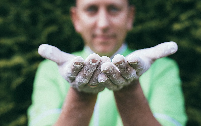 Christian Ofner ist ein Hund*. In erster Linie ein bunter – nicht nur wegen seines grünen Outfits. Das trägt er aus marketingtechnischen Gründen, denn er weiß um den Wert der Wiedererkennung. Also ein berechnender auch noch. Aber in allererster Linie ist Christian Ofner »Der Backprofi«. Und als solcher in der Tat so bekannt wie ein bunter. Wie zum Beweis oder besser wie in einem unglaubwürdig inszenierten Film spielt sich folgende Szene zu Beginn unseres Treffens vor seinem Backshop in Gleisdorf ab: Als backtechnisch gänzlich unbedarfter, klischee- und berufsbedingt kritisch distanzierter Journalist findet man zunächst die beste aller Fotografinnen in einer fraternisierenden Rauchsituation mit dem Backprofi vor – man kennt sich offenbar schon länger – als plötzlich ein Auto vorfährt. Diesem entsteigt eine Dame, die freitags nach Geschäftsschluss noch eine Ofner-Backmischung einkaufen möchte. Sie erkennt den prominenten Backprofi auch sofort, der zögert nicht lange und holt die gewünschte Ware aus dem Shop, derweil die Dame erzählt, dass ihr Mann ihr am Laptop während des Essens eines der unzähligen Backvideos von derbackprofi.at vorgespielt und damit zum Brotbacken animiert habe. Unwirklich und gestellt wird die Szene aber erst, als die Dame nach der Geschäftsabwicklung etwas zögerlich ihr Handy zückt und um ein Selfie mit Christian Ofner ersucht. Worauf die beste aller Fotografinnen ihre Profiausrüstung zur Seite legt und die winzige fremde Handykamera übernimmt, um den, an derartige Situationen offensichtlich gewohnten Backprofi mit einer Dame in den besten Jahren abzulichten, die ihr eine Faust mit nach oben zeigendem Daumen entgegenstreckt.