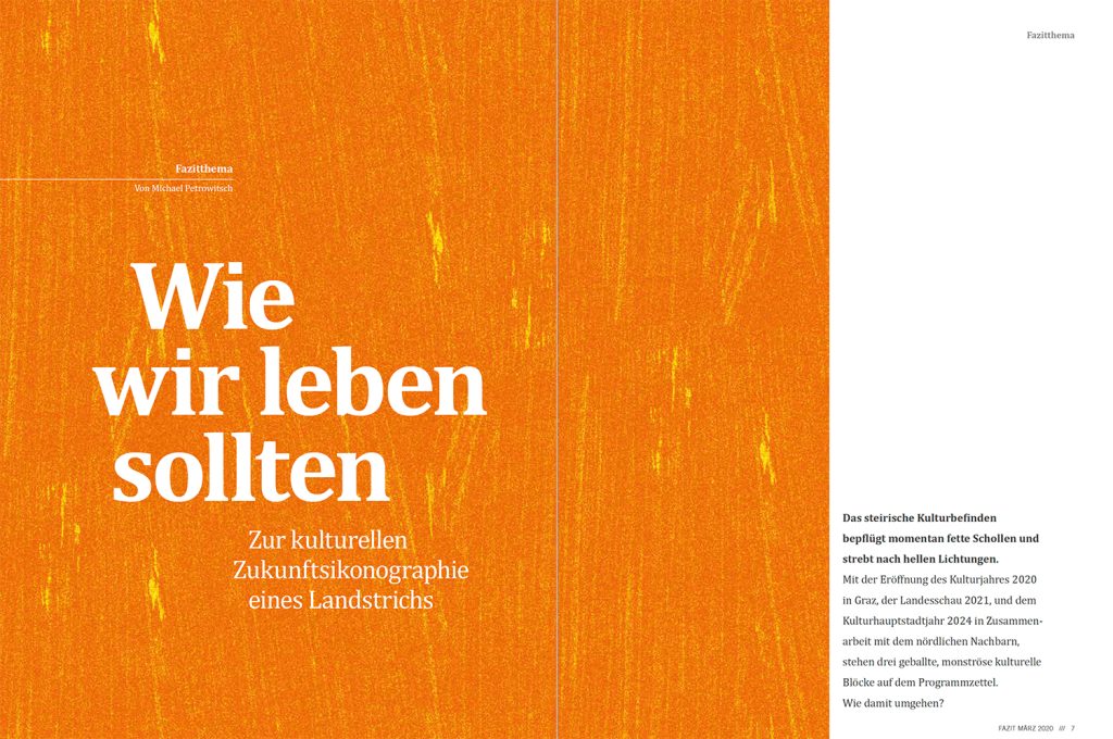 Zur kulturellen Zukunftsikonographie eines Landstrichs. Das steirische Kulturbefinden bepflügt momentan fette Schollen und [...]