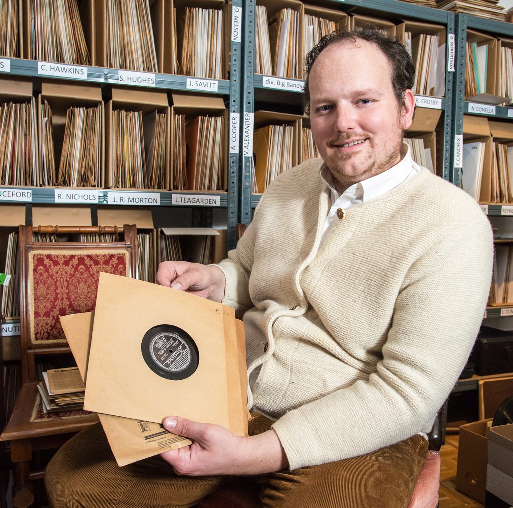 Auf dem Plakat an der Wand schaut ein kleiner Hund aufmerksam in den Trichter eines Grammophons. Das Motiv von »His Master‘s Voice« ist sehr bekannt. Martin Schuhmann kennt sogar den Hund: »Das