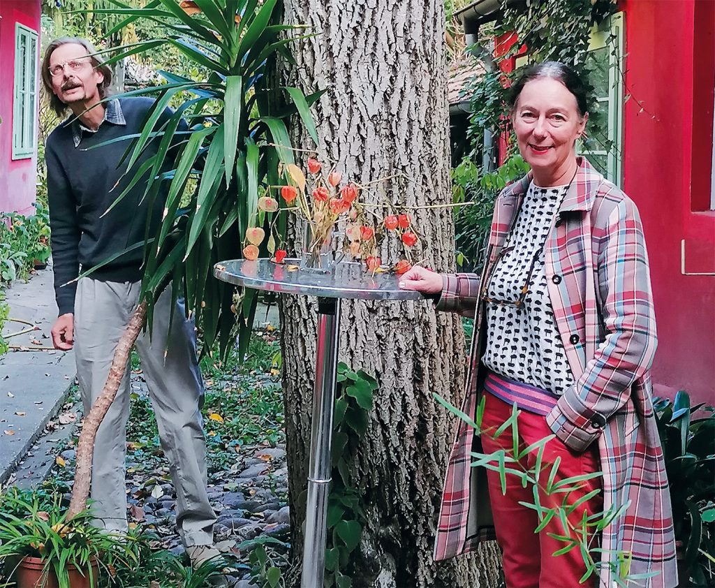 Das Tor des roten Hauses in der Grazer Jakoministraße 9 ist der Eingang zu einem verwunschenen Garten. Der Hinterhof wird links und