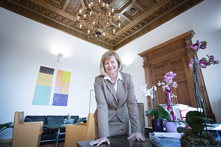 »Landes Obereinnehmer Amt« steht über dem Eingang zu Bettina Vollaths Büro. In [...]