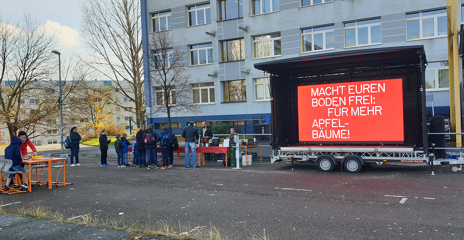 In einem – von der Österreicherin Barbara Holub – kuratierten Projekt wurde vor wenigen Tagen mit der Pflanzung von vier Bäumen und der interventionistischen Bespitzhackung eines Asphaltparkplatzes eines der Kernprojekte der Kulturhauptstadt Europas 2025 in Chemnitz eingeläutet. Unter dem Titel »We Parapom!« plant man, eine Parade von bis zu 4.000 Apfelbäumen quer durch die Stadt entstehen zu lassen. Der designierte Geschäftsführer der Kulturhauptstadt, Stefan Schmidtke, sprach von einem richtungsweisenden Projekt, das exemplarisch für die Anliegen des Kulturhauptstadtprogramms stehen würde. Partizipation ist auch ein Schlüsselwort, das Oberbürgermeister Schulze gerne ins Treffen führt, wenn es darum geht, die Pläne der nächsten Jahre zu konkretisieren. Weniger Neu- bzw. Umbauten, dafür Bürgerbeteiligung. Diese war auch ein bewusstes Signal an den Adressaten, nämlich sich selbst, die Bevölkerung. Die gut besuchte nachmittägliche Auftaktveranstaltung sollte wohl Lust auf Zukünftiges machen.