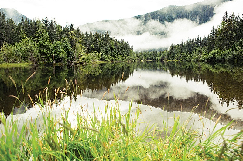 Der Flug von Seattle mit »Alaska Air« macht Stimmung. Blickt man aus dem kleinen Fenster, sieht man eine Miniaturlandschaft, die ein bisschen an die Alpen erinnert. Doch trotz Entfernung wirkt alles größer, verschneiter und einsamer. Gletscherseen blicken wie blaue Augen in den Himmel hinauf und die eigene Vorfreude wird größer. In Juneau, der Hauptstadt Alaskas, wird der Blick dann vorerst einmal von Nebelschwaden getrübt. Wer sich eines Regenwaldes erfreut, sollte auch mit dem dazugehörigen Wasser rechnen. Doch man ist ja mit Regenmantel vorbereitet. Immerhin ist Alaska quasi ein Synonym für Outdoor. Zuerst erfährt man mit Freude, dass man sich gleich direkt vom Quartier aus zu Fuß zum nächsten Gletscher aufmachen kann. Und was für ein Gletscher! Der Mendelhall Glacier zeigt sich bei bewölktem Wetter in bestem Licht. Und zwar glitzert er dann in tiefem Türkis.
