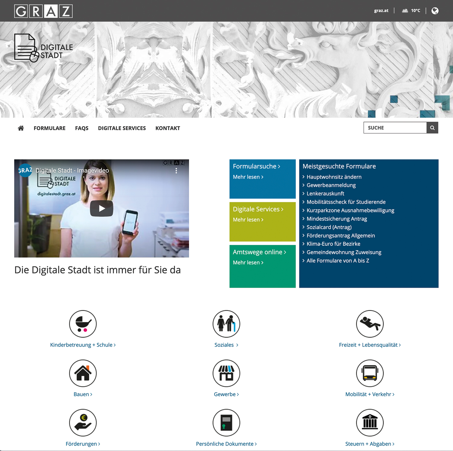 Vor kurzem wurde nun ein weiterer großer Schritt getan: Alle Schnittstellen, alle möglichen und denkbaren Aufgaben, die »die Stadt« (oder auch eine andere der Verwaltungsebenen) zu erfüllen hat, wurden im Projekt »Digitale Stadt« gebündelt und zentral aufrufbar auf einer neuen Webseite zugänglich gemacht. Über 18 Monate hat ein vor allem aus Magistratsmitarbeitern zusammengesetztes Team unter der Federführung von Verena Ennemoser, sie ist Chefin der Präsidialabteilung im Rathaus, und Walther Nauta (Datenschutzbeauftragter) an dieser Webseite gearbeitet und sie nach einer mehrere Wochen dauernden Betaphase schlussendlich am 1. März dieses Jahres online geschaltet.