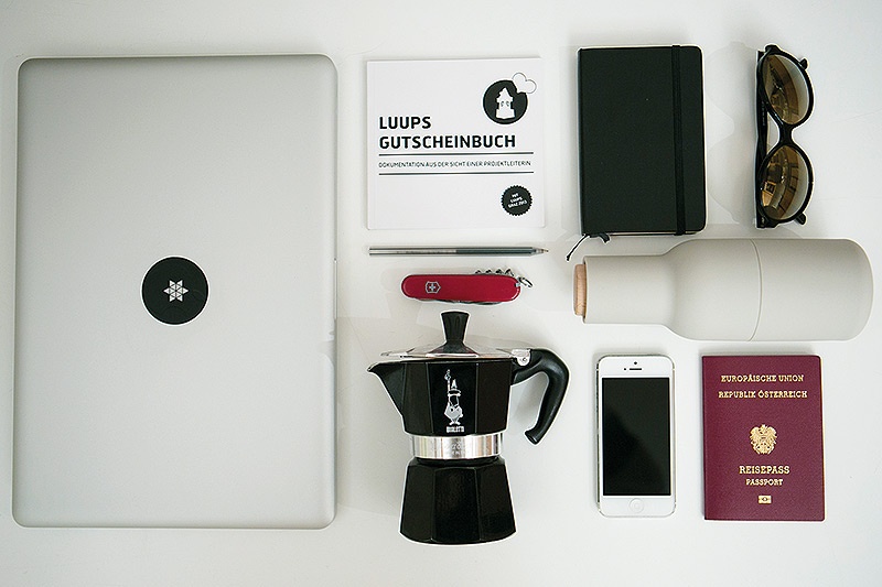 Und natürlich werden übers Internet auch die neuesten Teilnehmer am »Luups«-Gutscheinheft aufgespürt. Luups steht übrigens für Lass uns unseren persönlichen Spaß und bietet eine fröhliche Auswahl an Lokalen, Veranstaltungen oder Geschäften, bei denen man Bonusaktionen bekommt. Katharina Auferbauer ist mittlerweile seit fünf Jahren involviert: »Freunde rufen mich immer wieder an, wenn sie Tipps für spezielle Anlässe brauchen.« Zu Luups gekommen ist sie über Facebook und dieses Luups-Heft ist ein ganz besonderes Sammlerstück, nämlich ihre Bachelorarbeit. Immer mit dabei bei ihren Streifzügen durch die Stadt Graz hat die 27-Jährige auch ihren schwarzen Moleskinekalender und den Stift. Dort schreibt sie sich die wichtigsten Termine und Notizen auf.