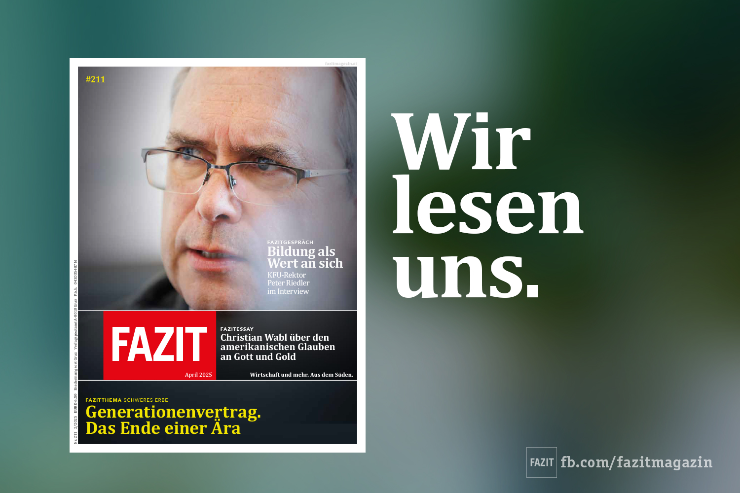 Mit ihren fast 29.000 Studierenden steht die Grazer Karl-Franzens-Universität vor großen Herausforderungen. Wir sprachen mit Rektor Peter Riedler über Österreichs zweitgrößte und zweitälteste Universität. Und im Fazitthema »Die letzte Generation« denkt Johannes Roth über die Zukunft unseres Pensionssystems nach.
