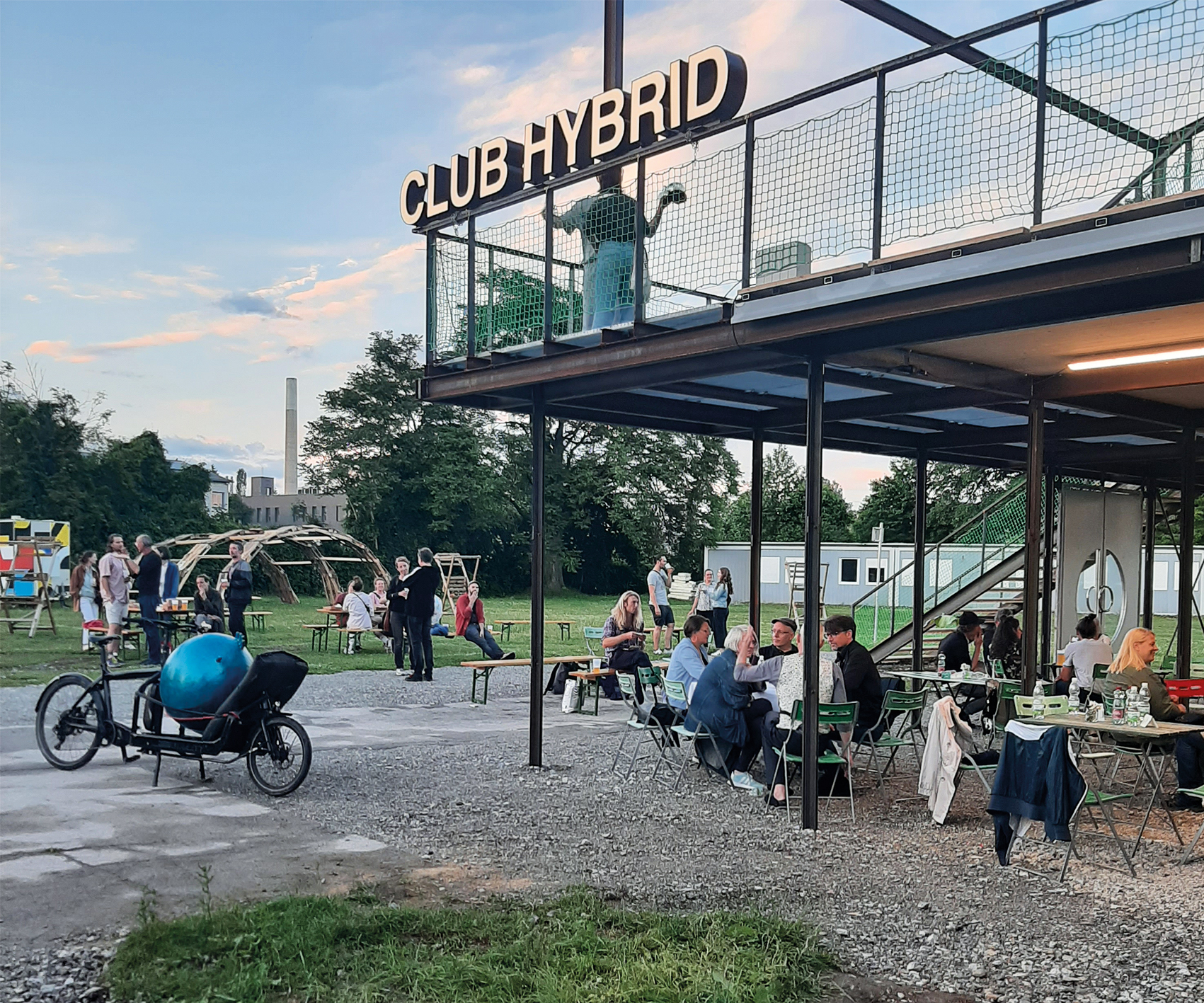 Club Hybrid ist ein zunächst temporäres Projekt im Feld urbaner Praxis, architektonischer Forschung, diskursiver und performativer Formate, Teilhabe und Gesellschaft, das sich dem Paradigma »Hybridität«, also zukunftsbezogenen Mischungen, annähert.