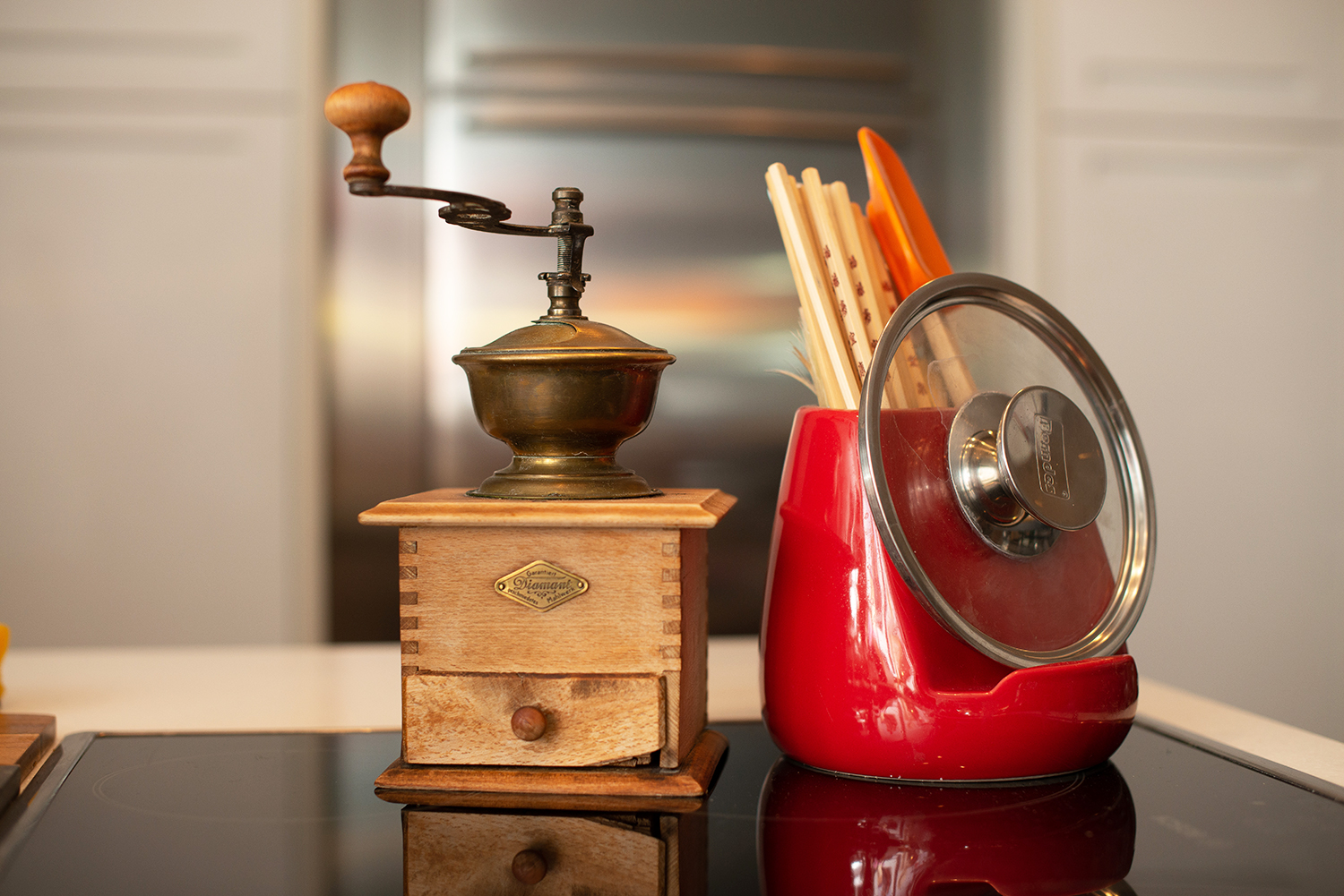 Vor mittlerweile 19 Jahren hat Ernst Frudinger das Problem Nummer eins gelöst und unsere Leserreise ist am Ziel: in der eingangs genannten Reitschulgasse mit viel Laufkundschaft. Hinter dieser äußerst markanten, weil mit viel Chrom versehenen Eingangstür, die genauso wie die große, chromgefasste Auslage üppig von steirischem Marmor umrahmt ist, befand sich zuvor viele Jahre lang ein Brautmodengeschäft. Mit der Lage ist Frudinger sehr zufrieden: »Schon beim Einräumen des Geschäfts haben wir Sachen verkauft. Noch bevor ich einen Kasten von Lambert reintragen konnte, hat ihn eine Dame um 2.500 Euro gekauft.« Viele Leute bleiben stehen, weil sie in der Auslage Dinge sehen, die irgendwie besonders sind. Aus glattem Metall, aus schönem Holz, aus reinem Kupfer oder einfach knallrot. Eine schlichte Holzscheibe von Zassenhaus bringt einen schneeweißen Mörser mit einem dunklen Stampfer aus Holz zur Geltung, Ölivenölkännchen aus Metall mit italienischer Aufschrift machen Appetit, teure Kaffeemühlen aus Olivenholz stimmen nostalgisch, aber die klare Auspreisung der Waren und die günstigen Mokkakocher von Bialetti veranlassen immer wieder auch junges Publikum, die Hemmschwelle an der Tür zu überwinden und durchwegs edles Küchenzubehör und Accessoires wie Dufflebags und doppelseitige Schürzen aus Dirndlstoff im Geschäft selbst zu entdecken. Und manchmal wohl auch eine Küche. »Zuerst frage ich immer nach dem Budget und damit versuche ich das Beste rauszuholen«, so der passionierte Küchenplaner. Sein kleinster Küchenauftrag war übrigens eine Teeküche um weniger als 15.000 Schilling (1.000 Euro), der größte eine Küche für Graf Batthyany um eine Million Schilling (73.000 Euro) in den Achtzigern.
