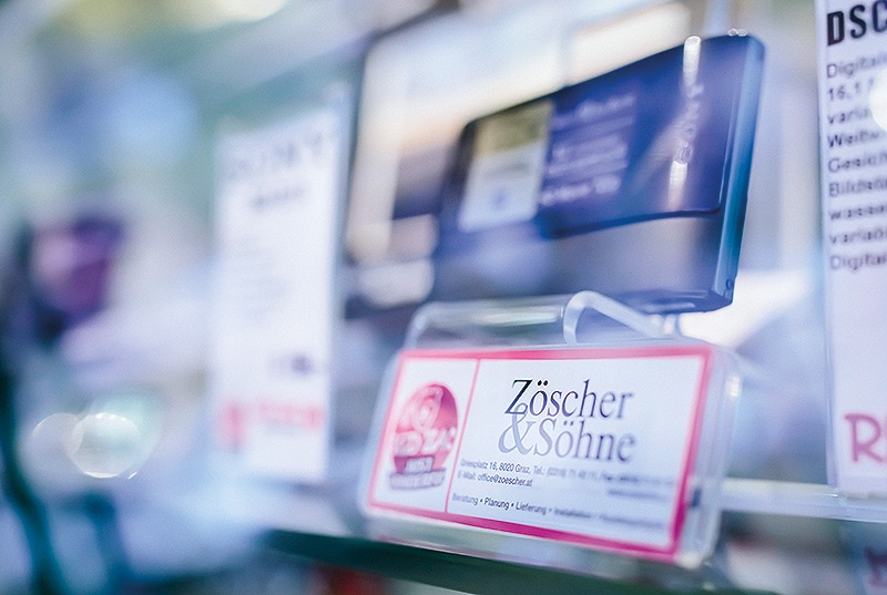 Bei der Marge gibt es wenig Spielraum. – Oder wie es Geschäftsführer Christian Zöscher formuliert: »Das Geld wird im Einkauf verdient.« Deshalb ist das Grazer Unternehmen Mitglied der Fachhandelskooperation »Euronics«, die im Grunde eine Einkaufsgemeinschaft ist und als einer von 180 Händlern auch bei »Red Zac«, einer Kommunikations- und Werbekooperation. »Da hat man dann schon ein anderes Verhältnis zur Industrie«, erläutert Dieter Zöscher. Auch die Elektroinstallationsabteilung wickelt Einkauf und Marketing über einen Zusammenschluss von mittelständischen Elektro-Großhändlern (Mitegro) aus dem deutschen Sprachraum ab. Um welche Dimensionen es dabei geht, spiegelt allein der Umsatz dieser Kooperation wider: 5 Milliarden Euro. Doch auch wenn die Strukturen alle im Griff sind, müssen noch ganz andere Dinge bedacht werden.  Womit wir wieder bei den Kunden sind. Erst nach mehr als zehn Jahren am Griesplatz gelang es, auf der Hinterseite des Geschäfts, in der Ägydigasse, ein Parkplatzareal zu erwerben. Wie wichtig das war, erläutert Christian Zöscher kurz und bündig: »Sonst würde es uns hier nicht mehr geben.« Und da man Kunden nie genug erfreuen kann, hat der Zöscher etwas, genauer gesagt jemanden, der – untertrieben ausgedrückt – ein Mehrwert generierender Geheimtipp ist. Und ein Ass auf seinem Gebiet. Und ein Original.