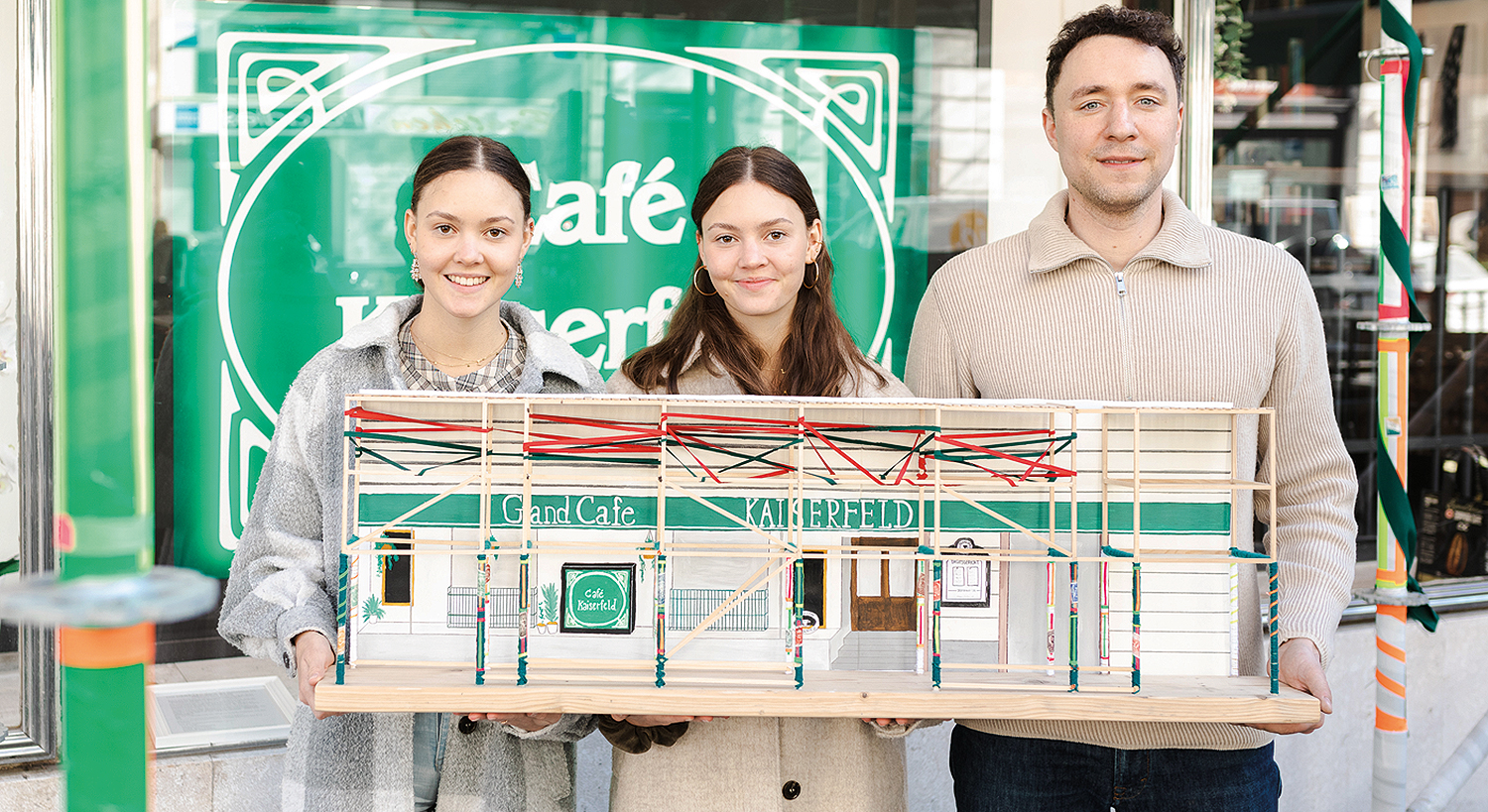 beide Schülerinnen an der HLW Weiz in ihrem Abschlussjahr, hat er das Gerüst kurzerhand in ein kleines wie feines Kunstwerk im öffentlichen Raum umwandeln lassen.