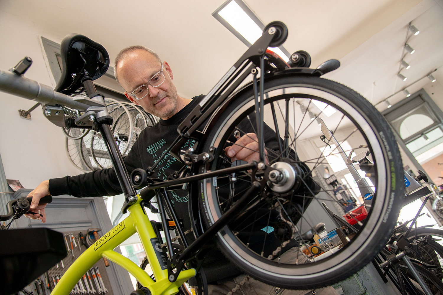 Nun gibt es das »Bicycle-Entwicklungsprojekt Fahrrad« bereits seit 35 Jahren. Ein Zeitraum, der länger ist als jener, den man für eine ganze Generation rechnet, ein Zeitraum, von dem moderne Startups mit einer durchschnittlichen Überlebensdauer von vier Jahren nicht einmal träumen können. Wer hätte Ende der Neunzehnachtzigerjahre einem sozialökonomischen Jugendbeschäftigungsprojekt, erfunden und geleitet vom damals 25-jährigen Gerd Kronheim gemeinsam mit Kurt Söllner ein derart langes Unternehmensleben zugetraut? Das Projekt war seinerzeit in Graz etwas Neues – nur in Linz gab es etwas Ähnliches und auch noch die »BAN« in Graz – aber österreichweit kann »Bicycle« als Vorreiter angesehen werden. Die Verschränkung von Wirtschaft und sozialem Anspruch eines Projekts hat in der Folge bundesweit unzählige Nachahmer gefunden. Erstaunlich ist auch der Umstand, dass der mittlerweile 60-jährige Gerd Kronheim, inzwischen verheiratet und Vater zweier erwachsener Kinder, nach wie vor und ohne Unterbrechung Leiter und Geschäftsführer des als Verein geführten Projekts ist. Und auch Kurt Söllner ist nach wie vor im Vorstand – irgendetwas müssen die beiden richtig gemacht haben. Ursprünglich haben beide beim Jugendarbeitslosenprojekt »Insel« mitgearbeitet und Kronheim war klar, dass nach der im wahren Wortsinn handwerklichen Sanierung des dortigen Gebäudes in der Leutzenhofgasse ein Stillstand für alle Beteiligten drohen werde. »Damals entstand die Idee, etwas zu machen, das nicht endet, ein Beschäftigungsprojekt – Fahrradwerkstätte und -verleih«, so Kronheim. Bei einer Reise nach Dänemark lernte der gelernte Maschinentechniker die damals schon fortschrittliche dänische Sozialpolitik und -arbeit mit Arbeitslosen näher kennen und schätzen. Und schnitt sich sozusagen eine Scheibe davon ab. Davon zeugt bis heute die immer weiter getriebene Entwicklung des »Bicycle-Projekts«, das mittlerweile nicht mehr auf Jugendliche beschränkt ist. Gerd Kronheim: »Als 1989 die Strukturarbeitslosigkeit losging waren vor allem junge Leute davon betroffen. Im vorigen Jahr haben wir mehr als 40 Prozent Über-55-Jährige bei uns gehabt. Das ändert sich aber gerade wieder.«