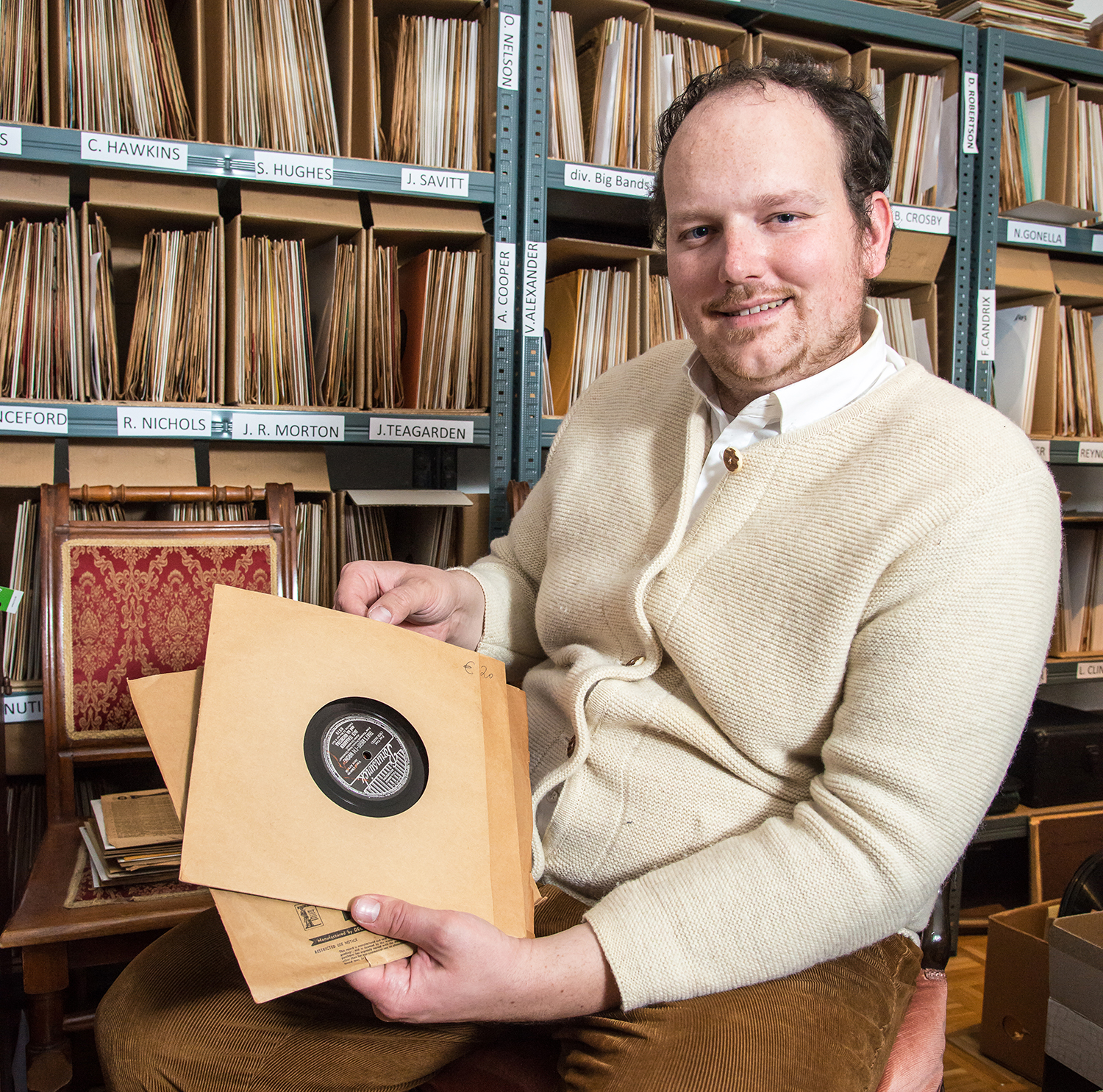Zu den Klängen von Tommy Dorsey, Count Basie, Gene Krupa, Benny Carter und Benny Goodman erzählt Martin Schuhmann von seinem Traum, seine Schellacks als Radiomoderator präsentieren zu dürfen. Tatsächlich verfügt er über ein weitreichendes Equipment, nimmt die Schellacks über einen Plattenspieler mit 78 Umdrehungen auf Kassette auf und digitalisiert die Musik auf CDs – die übrigens lange nicht so gut halten würden wie die guten alten Musikkassetten. Die er wiederum gern im Autoradio abspielt: »Ich mag diese nostalgischen Stimmen und Arrangements. Jedes Orchester damals hat einen eigenen Stil entwickelt, wie Larry Clinton, Duke Ellington, Fletcher Henderson oder Count Basie. Heute klingt alles irgendwie gleich.« Schon mit zwölf Jahren begann er auf Flohmärkten Schellacks zu sammeln. Als er mit der Schule in London war, wurde er genauso fündig, wie beim Familienurlaub in Paris oder später auch in den USA. Heute greift er auch bei Sammlungsauflösungen gern zu. Vollends vereinnahmt haben ihn seinerzeit die Sendungen von Gerhard Werner »Musik aus alten Rillen« auf Radio Nostalgie Raaba (94,2 Mhz) von 2003 bis 2005 und natürlich von Günther »Howdy« Schifter auf Ö3 mit seinem sonoren O-Ton: »Schellacks und Schellacks und Schellacks«. »Es gibt keinen wärmeren Klang als den Ton von Schellacks«, sagt der Liebhaber Schuhmann, der im Übrigen zehn Jahre Klarinette am Johann-Josef-Fux-Konservatorium in Graz gelernt hat. Und auch sonst musikalisch nicht ganz unvorbelastet ist, war doch Vater Rudolf Schuhmann neben seinem Job als Jurist auch Gitarrist bei der »El Gurko«-Band und hinterließ seinerseits eine Sammlung von 6.000 LPs. Aus Vinyl natürlich.