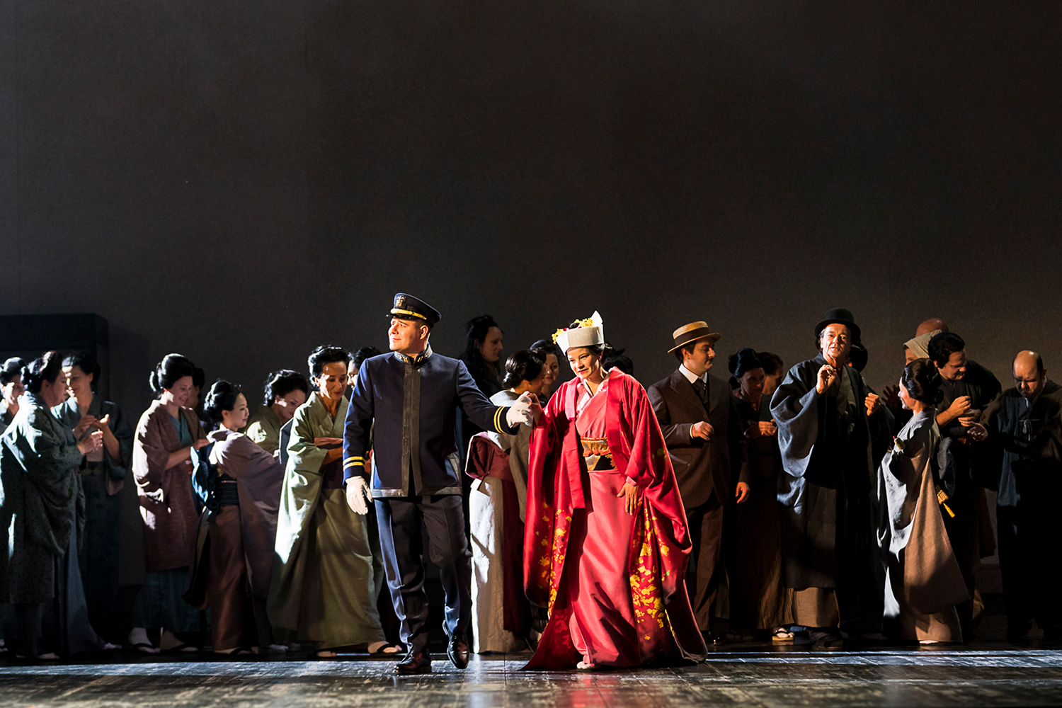 Und den Ohren haben eigentlich alle Protagonisten gut getan, hervorzuheben natürlich Marjukka Tepponen in der Titelrolle und Mareike Jankowski als ihre Dienerin Suzuki. Jedenfalls erwähnenswert auch noch Manuel von Senden als der anrüchige Heiratsvermittler Goro sowie Neven Crnić als Konsul Sharpless. Für kurzes wie gelungenes Amusement sorgte auch Daeho Kim als Onkel Bonzo nicht nur durch seine Fangemeinde im Publikum. Die männliche Hauptrolle, der Marineleutnant Benjamin Franklin Pinkerton gegeben von Mykhailo Malafii, da bin ich mir sicher, dass es seine fragwürdige Rolle war, die mich in meiner Begeisterung ein ganz klein wenig hat abfallen lassen. Recht sicher. Insgesamt ein furioser Abend, machen Sie sich und Ihrem Mann die Freude und schauen Sie sich das an. Noch bis Jänner im Opernhaus.