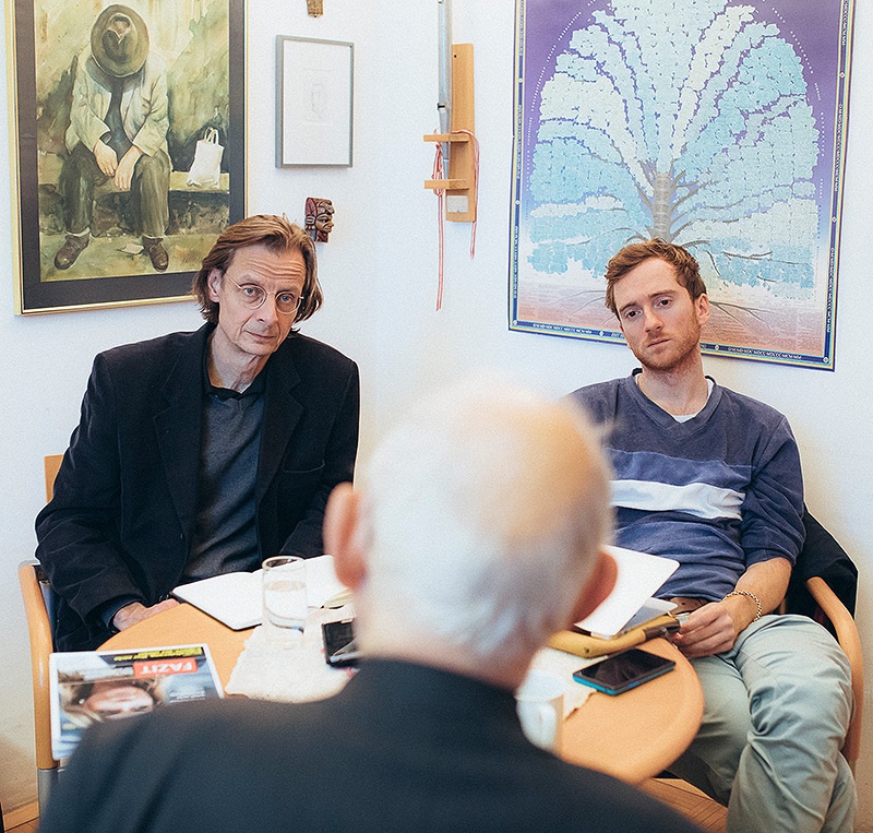 Für das aktuelle Fazitgespräch haben Peter K. Wagner und Volker Schögler unseren Gesprächspartner in seinem Büro in Graz besucht. Unser Bild zeigt das Fazitteam und den Gastgeber (zumindest von hinten). Fotografiert hat in bewährter Manier Marija Kanizaj. Fazit 138 erscheint nächsten Mittwoch und kurz darauf auch online. Wir lesen uns.