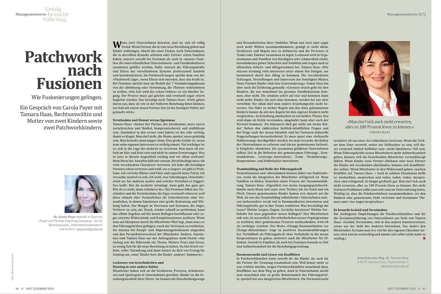 Wie Fusionierungen gelingen. Ein Gespräch von Carola Payer mit Tamara Haas, Rechtsanwältin und Mutter von zwei Kindern sowie zwei Patchworkkindern.