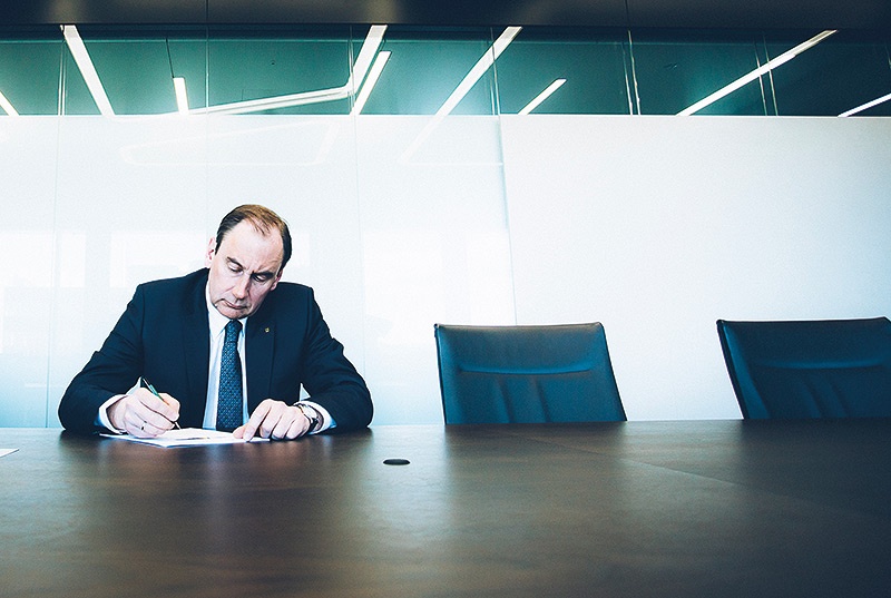 Der Oberösterreicher steht der Raiffeisenlandesbank Steiermark seit gut zwei Jahren vor. Von seinem großen Büro überblickt man den das kleine Raaba und sieht ein bisschen in Richtung der Landeshauptstadt. Wir nehmen am großzügigen Besprechungstisch Platz und bekommen eine Stunde Zeit. Für ein Gespräch über die Gegenwart und Zukunft dieser großen steirischen Landesbank.