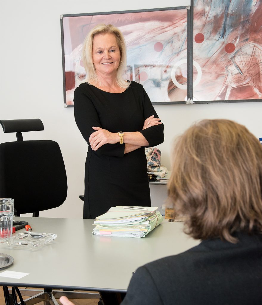 Zum Glück ist sie auch ausgebildete Mediatorin, denn: »Ich habe stets mit Menschen zu tun, die gescheitert sind, und das ist immer schmerzhaft.« Egal, ob Scheidung (Ehe), Trennung (Lebensgemeinschaft) oder Auflösung (eingetragene Partnerschaft) – ein Ansprechpartner sowohl mit rechtlicher als auch mit psychotherapeutischer Ausbildung wird dabei kein Nachteil sein: »Ich lerne im Rahmen so eines Mandats Menschen zumindest partiell besser kennen, oft wie einen Elternteil, eine Schwester oder einen Bruder.« Der männliche Anteil an Klienten sei im Übrigen gleich hoch wie der weibliche. Aber das ist eine lange Geschichte. Die Einzelkämpferin war nach ihrem, 1980 in Mindestzeit absolvierten Jusstudium zwar in Wirtschaftskanzleien tätig und mit Materien wie Schadenersatz-, Banken- und Versicherungsrecht befasst, erhielt aber in der Folge, als sie sich mit einer eigenen Kanzlei selbständig machte, als Frau keine entsprechenden Mandate. »Im ganzen OLG-Sprengel gab es 1986 gerade einmal drei oder vier Richterinnen, heute hingegen ist die erste Instanz zu mehr als fünfzig Prozent weiblich.« Erst mit der erfolgreichen Vertretung von zwei Ehefrauen in den Scheidungsverfahren gegen deren Männer – in sogenannten angesehenen Positionen – wuchs ihr Ruf als Scheidungsspezialistin. Entsprechende Mundpropaganda sorgte für vermehrten Klientenzulauf ganz im Sinne der alten, mittlerweile gelockerten Standesregel, wonach der Rechtsanwalt nur durch seine Leistung werben durfte.