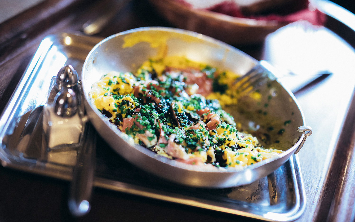 Wie der Name der Bühne »Hin & Wider« anklingen läßt, war ihre Nutzung ursprünglich eher sporadisch geplant. Das ist anders geworden: Kabarettvorstellung ist jeden Tag! Außer sonntags und montags, da hat das Theatercafé geschlossen. Stimmt auch nicht ganz, denn jeden vierten Sonntag steht Varieté am Programm. »Ursprünglich wollten wir nach dem Cabaret zusperren, aber das ist wirtschaftlich nicht möglich«, so die Betriebswirtin. Sie haben mit dem Lokal das einzig Richtige gemacht: nichts verändert. Sogar die Speisekarte ist gleich wie vor sechzig Jahren. Gulaschsuppe, Würstl, Toast, Punkt. Und dann das, wofür das Theatercafé berühmt ist: Eierspeis. Mit Kernöl, mit Grammeln, mit Spinat – es gibt quasi unzählige Varianten. Ein absolutes Muss, mythosbehaftet mit einem Hauch Abenteuer, letzteres allerdings für den Koch. Dieter Slanz hatte vom Aufschlagen der Eier einen Tennisarm – ärztlich verbrieft.