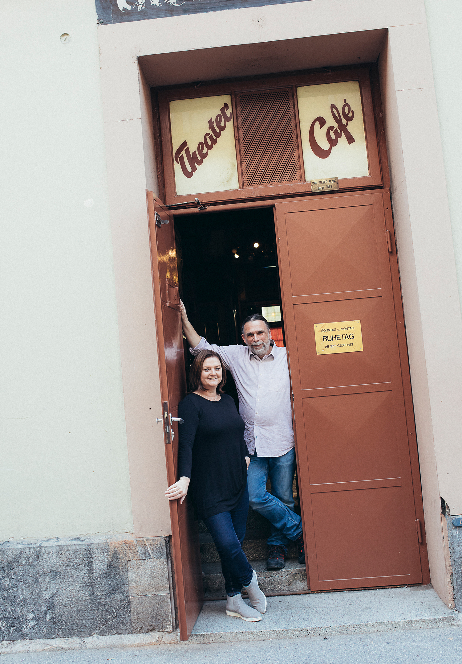 Es grenzt an ein Wunder, dass es dieses Lokal überhaupt noch gibt. Als Dieter Slanz das Theatercafé 1962 von seinem Großvater mit den Worten »Du kannst es selbst führen oder verkaufen« übertragen bekam, war er 21 Jahre alt. Er verkaufte es erst 46 Jahre später an Tanja Baumgartinger und verstarb bereits im Jahr darauf. Sie führt es seit 2008 gemeinsam mit dem Leiter der 1983 entstandenen Kleinkunstbühne »Hin & Wider«, Manfred Koch. Die beiden Kärntner sind Jugendfreunde, seit 30 Jahren ein Paar und seit diesem Sommer verheiratet. Dass sie Betriebswirtschaft fertig und er Maschinenbau fast fertig studiert hat, ist nicht von Nachteil. »Wir haben beide schon jahrelang bei Dieter Slanz im Theatercafé mitgearbeitet und 2008 war unser erster Gedanke: Die Kleinkunstbühne muss gerettet werden«, schildert die Wirtin. Das ist den beiden in fulminanter Weise gelungen.