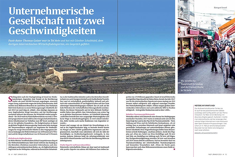 Fazit-Autor Thomas Goiser war in Tel Aviv und hat mit Günther Schabhüttl, dem dortigen österreichischen Wirtschaftsdelegierten, ein Gespräch geführt.