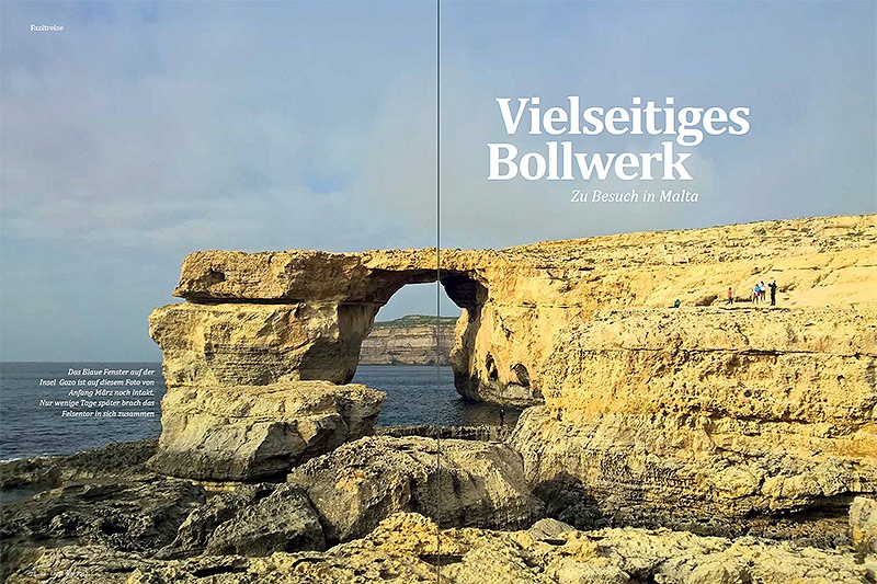 Die Inselgruppe aus Malta, Comino und Gozo sind auch abgesehen davon sehr vielseitig. Abseits der Vorzüge eines normalen Badeurlaubs – große Vorteile: Zahlungsmittel Euro, englische Sprache, Nachtleben, Roaming – gibt es viel zu entdecken. Festes Schuhwerk und Sonnencreme sind empfohlen. Eine Vielzahl an malerischen Buchten mit Postkartenblicken – wenn einem nicht gerade ein Kraftwerk oder eine moderne Güterhafenanlage den Blick einschränken – laden die Besucher ein. Meist unmittelbar daneben gibt es dann Steilküsten mit atemberaubenden Ausblicken. Sandstrände gibt es allerdings kaum. Außerdem findet man einige Ruinen von jungsteinzeitlichen Tempelanlagen wie die sehenswerte »Hagar Qim« (Foto Seite 78 unten), deren Bautechnik ebenso ungeklärt ist, wie deren Zweck und die Kultur der Menschen, die diese nutzten. Vor allem entlang der Küsten existieren zahlreiche Festungsanlagen aus der Zeit der Herrschaft der Ritter, weiters eine Reihe von Palästen die sich über das Land verteilen.