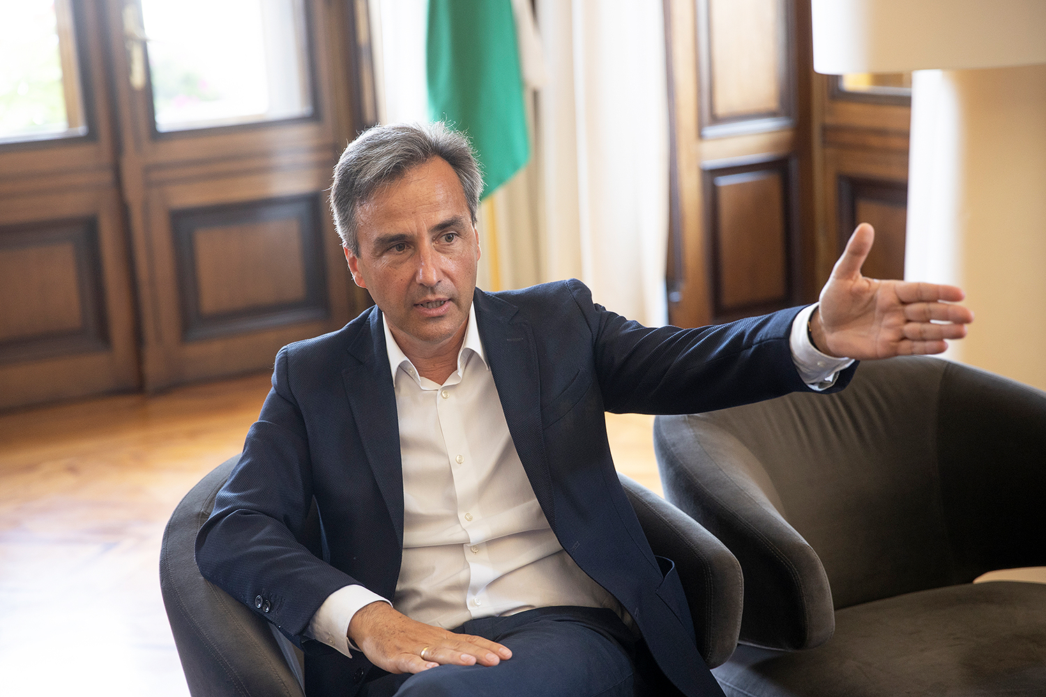 Schwarz statt Weiß. Die alte Sitzecke ist einer neuen gewichen – immerhin sind auch schon fünf Jahre ins Land gezogen, seit wir zuletzt beim Grazer Bürgermeister zu Besuch waren. Nun ist es wieder Zeit, denn im Herbst wird gewählt in der steirischen Landeshauptstadt.