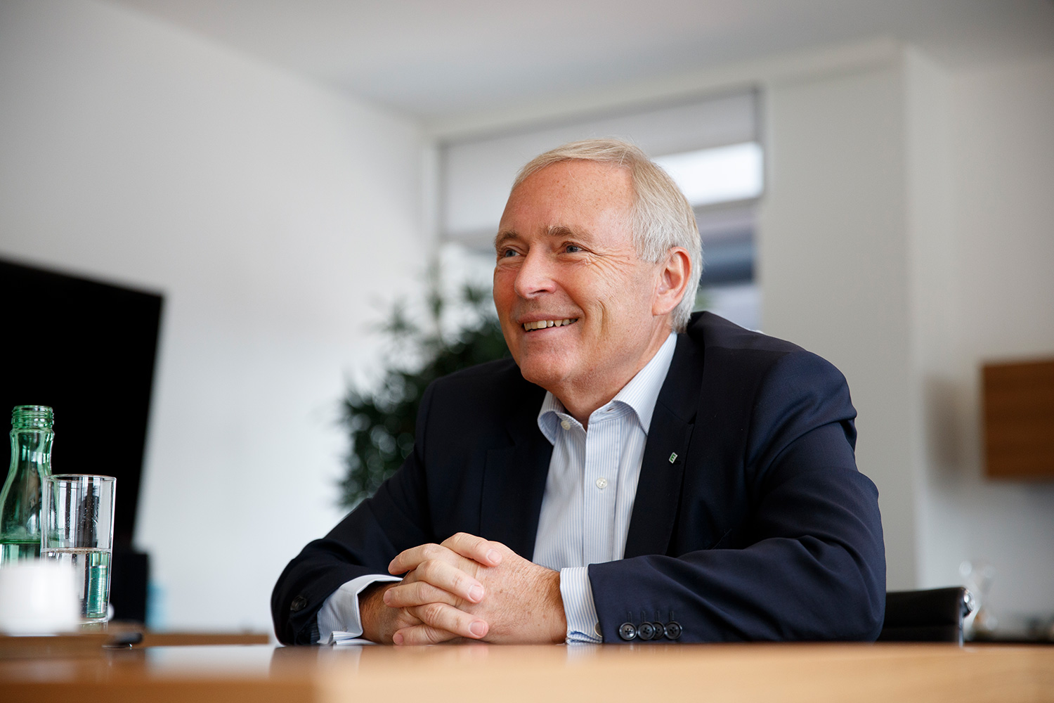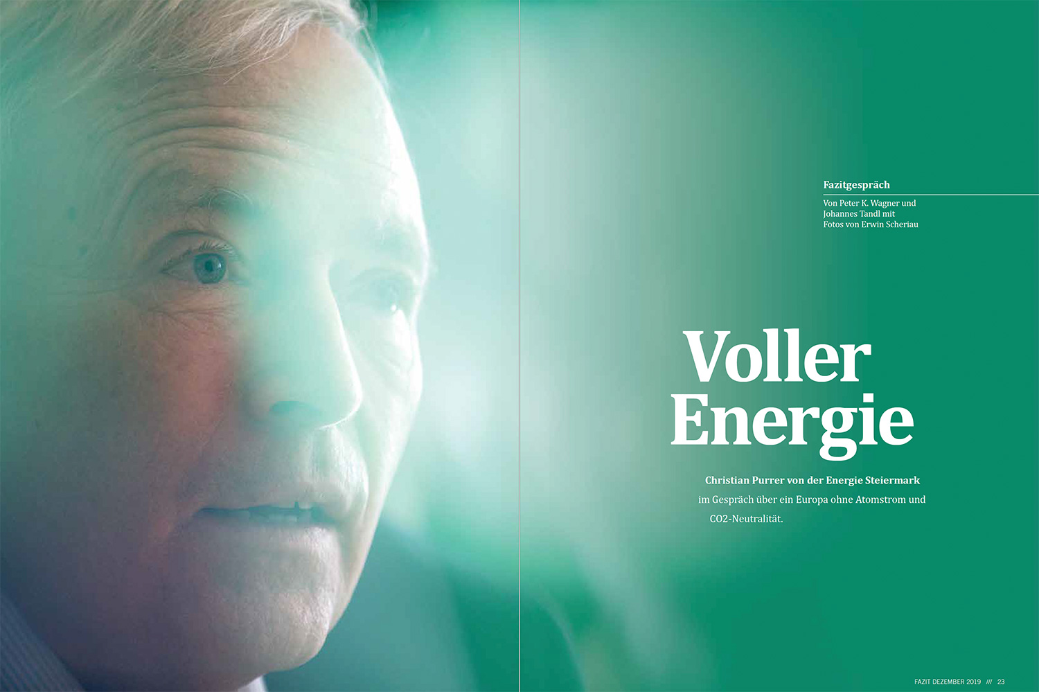 Nach kurzem Warten, das die Möglichkeit zum Smalltalk mit einigen führenden Mitarbeitern bei einem ausgezeichneten Espresso bietet, öffnet sich die Tür von Vorstandssprecher Christian Purrer: »Kumt´s eina. Über was reden wir heut?«