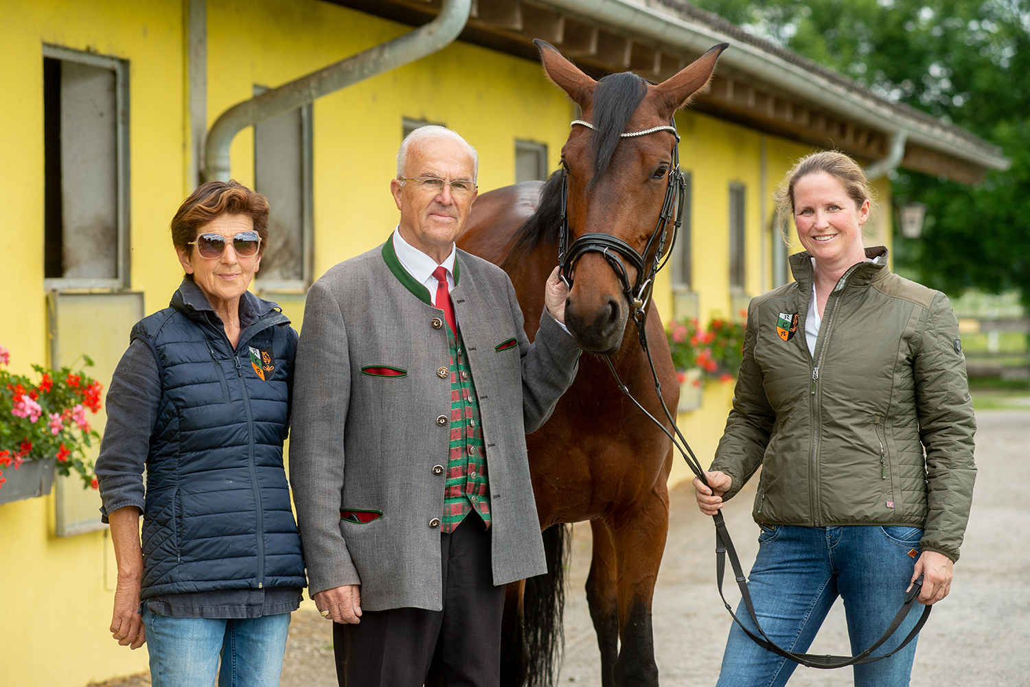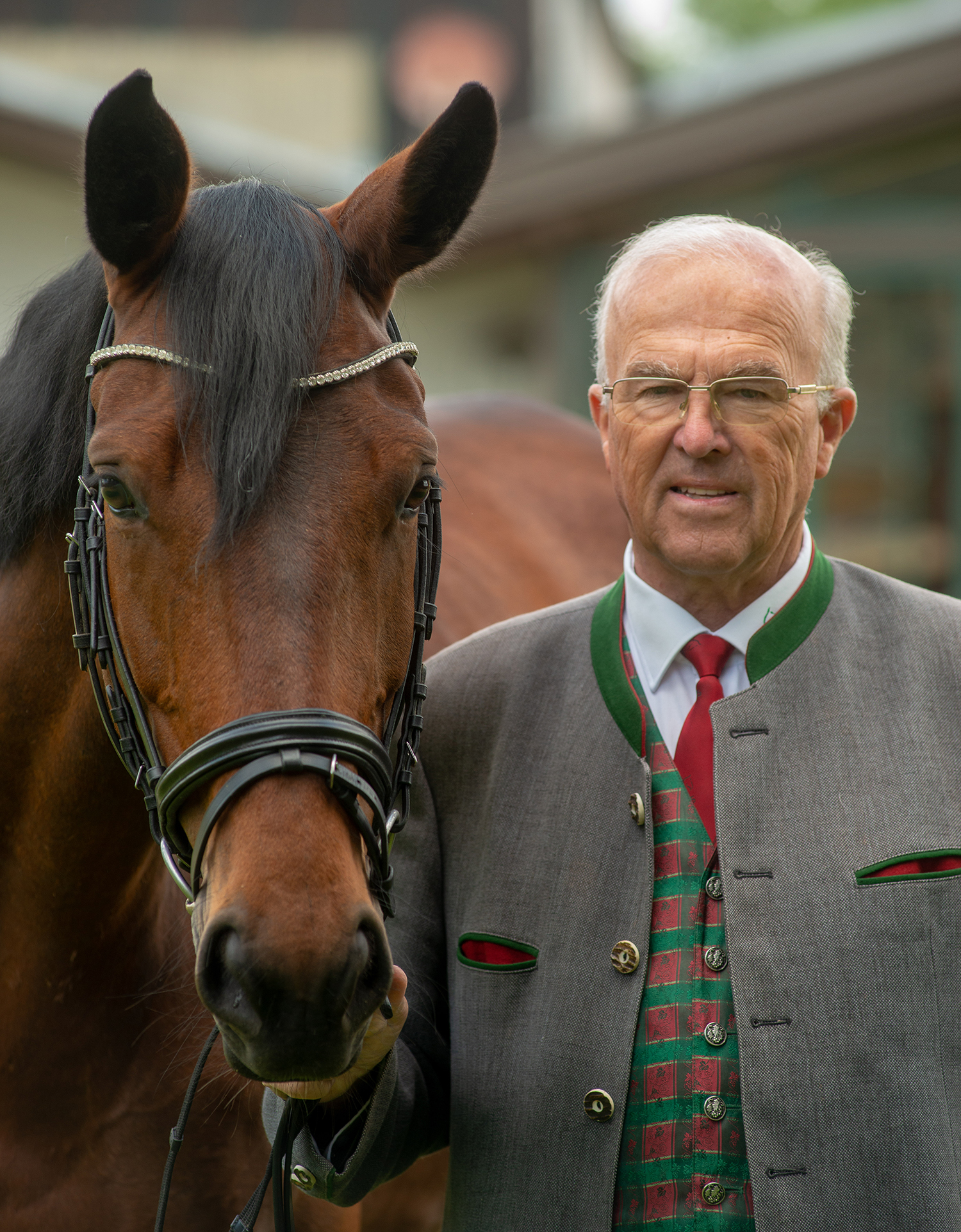 Gerne erzählt Ludwig Hoffmann eine Anekdote mit dem seinerzeitigen Bundesreferenten für Dressurreiten und Piber-Chef Hofrat Heinrich Lehrner, als er 1976 als frischgebackener Dressurreferent – der er bis heute ist – bei diesem mit dem Ansinnen vorsprach, eine Meisterschaft in Fernitz auszurichten. »Dafür ist ein würdiger Rahmen notwendig, so wie Schloss Schwarzenegg bei Wildon«, bekam er als abschlägige Antwort. Aus einer »Gstättn« einen würdigen Rahmen zu machen, war fortan sein Ziel. Er pflanzte Bäume und Hecken, legte Rasen an und setzt bis heute jährlich fast tausend rote Pelargonien. Im wahren Wortsinn eigenhändig. Für die Rasenflächen benötigt Ludwig Hoffmann mit dem »Hoftrack« vier Stunden. Das ist ein Allzweckfahrzeug zum Rasenmähen, Mistausführen, Stroh und Heu abladen und zum Planen der Reitbahnen. Wie lang er zum Heckenschneiden braucht ist unbekannt, bekannt ist aber die Länge: drei Kilometer! Und alles wird mit der Krawatte erledigt. O-Ton: »Ohne Krawatte springt der Track gar nicht an.« Als der Hofrat die Anlage Anfang der Neunzehnachtzigerjahre besuchte, tat er den Ausspruch, über den Hoffmann sich heute noch freut: »Das schaut ja aus wie Klein-Laxenburg.« Inzwischen sind es mehr als 20 Staatsmeisterschaften geworden, die hier abgehalten wurden.