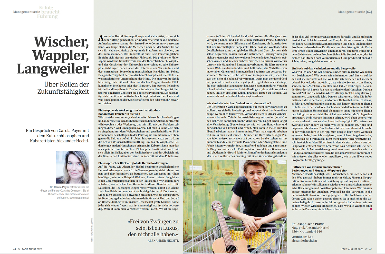 Über Rollen der Zukunftsfähigkeit. Ein Gespräch von Carola Payer mit dem Kulturphilosophen und Kabarettisten Alexander Hechtl.